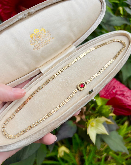 ANTIQUE • Victorian 10k Yellow Gold Book Chain Necklace w/ Foiled Garnet Paste Clasp
