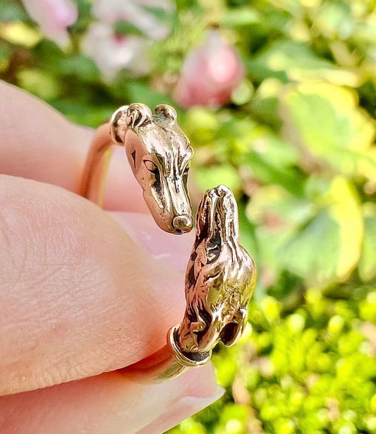 ANTIQUE • Late Georgian 14k Double Hound Head Ring