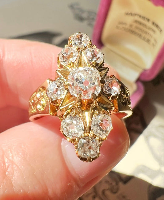 ANTIQUE • Victorian 18k Yellow Gold North Star Old Mine Cut Diamond Ring