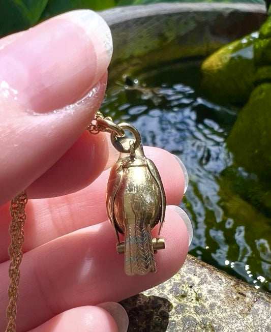 ANTIQUE • Art Deco 14k Tri-Tone Gold Chalcedony Parrot Charm Pendant