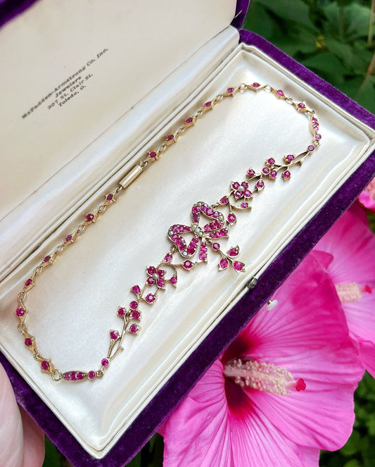 ANTIQUE • Victorian Natural Ruby Floral Necklace