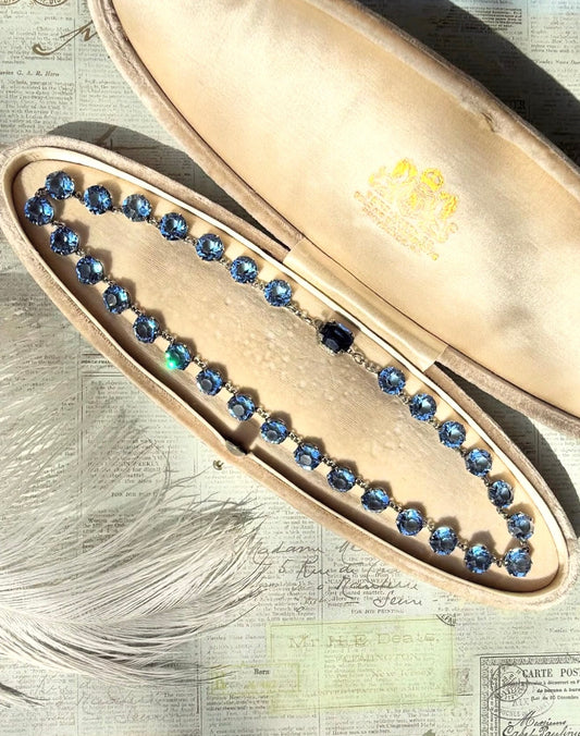 ANTIQUE • Art Deco Sterling Silver w/ Blue Sapphire Paste Rivière Necklace