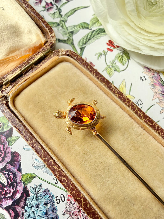 ANTIQUE • Art Nouveau 14k Yellow Gold w/ Madeira Citrine Turtle Stickpin