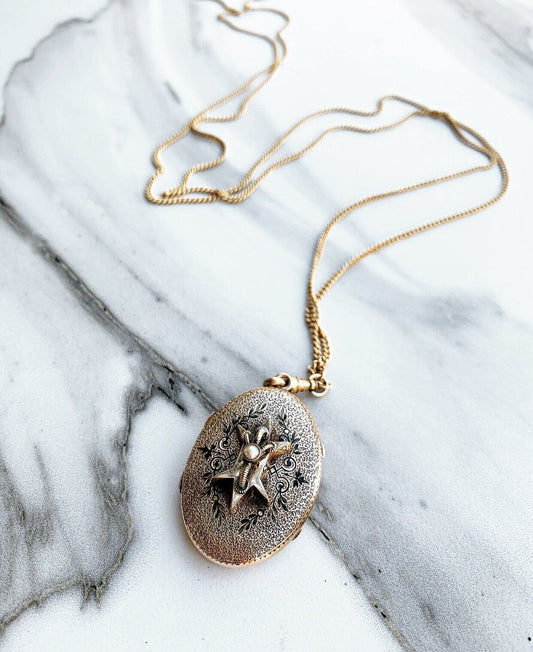 ANTIQUE • Victorian 14k Yellow Gold Taille d’Epargne Enamel Mourning Picture Locket Pendant