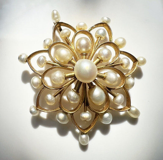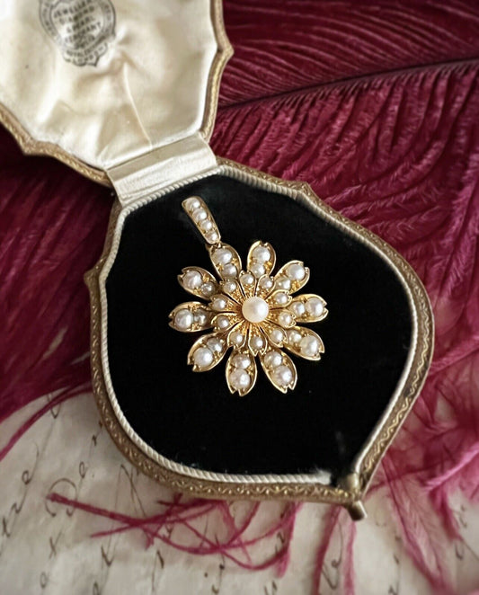 ANTIQUE • Victorian 14k Yellow Gold Natural Sea Pearl Star Flower Pendant