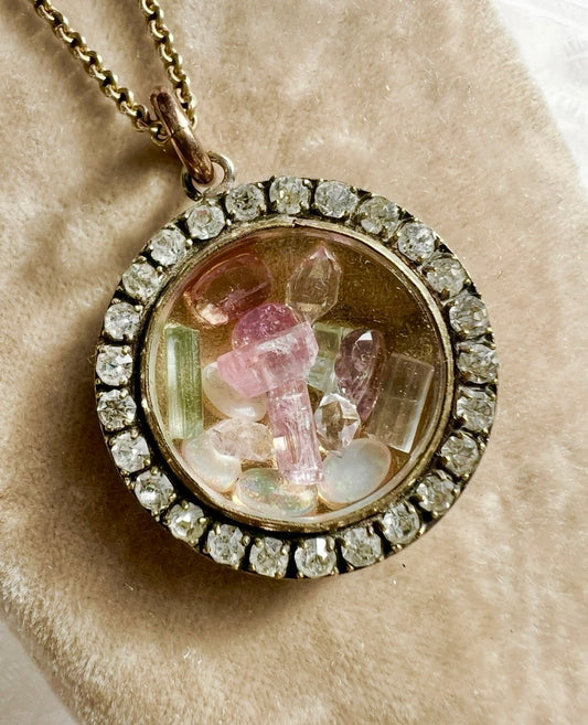 ANTIQUE • Victorian Gold Filled w/ Paste Diamond Halo Shaker Locket & Gemstones