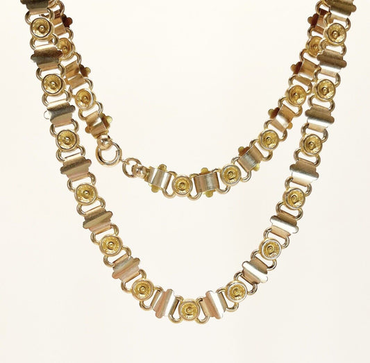 ANTIQUE • Victorian 9k Yellow Gold Sun Flower Theme Book Chain Collar Necklace