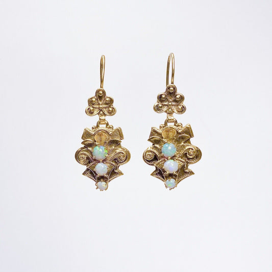 ANTIQUE • Victorian Etruscan Revival 14k Gold & Natural Opal Dangle Earrings