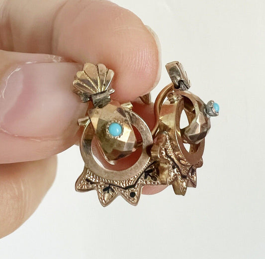 ANTIQUE • Victorian 9k Rosy Gold w/ Turquoise & Taille d’Epargne Enamel Earrings