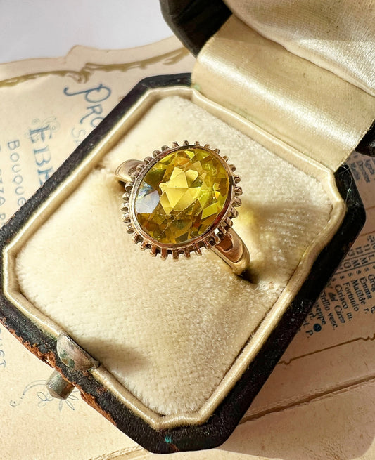 ANTIQUE • Victorian 10k Yellow Gold w/ Yellow Sapphire Paste Stone Ring Sz. 7.25