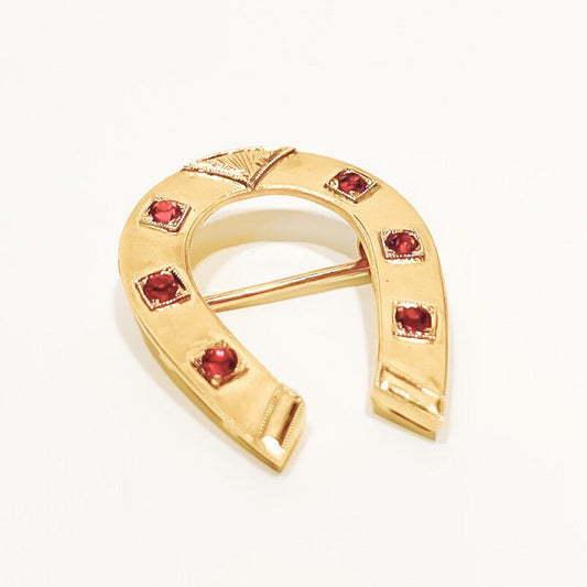 ANTIQUE • Victorian 10k Yellow Gold w/ Paste Garnet Horseshoe Brooch