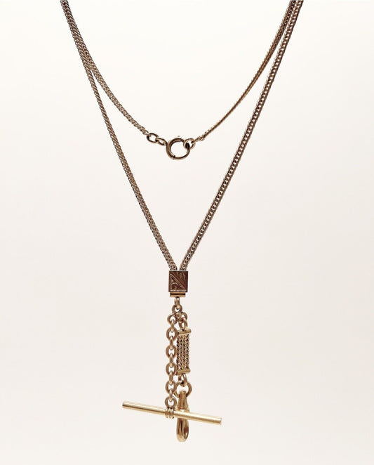 ANTIQUE • Victorian 10k Gold Double Curb Watch Chain Necklace w/ Dog Clip & Tbar