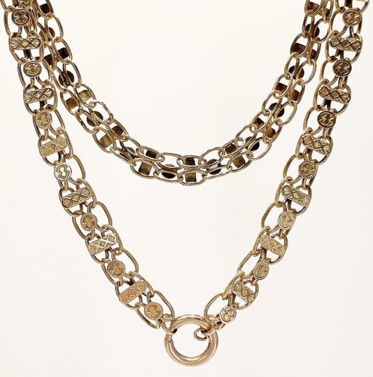 ANTIQUE • Victorian 14k Yellow Gold Biker Link Watch Chain Necklace