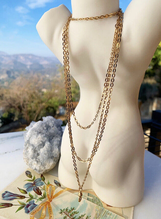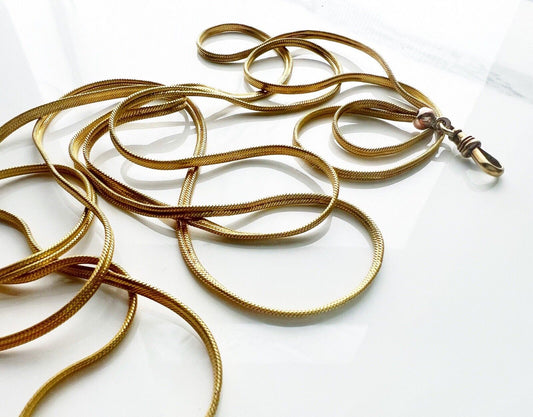 ANTIQUE • Victorian 10k Yellow Gold Slinky Snake Longuard Chain Necklace