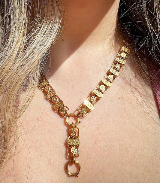 ANTIQUE • Victorian 14k Yellow Gold Ornate Stamped Book Chain Collar Necklace