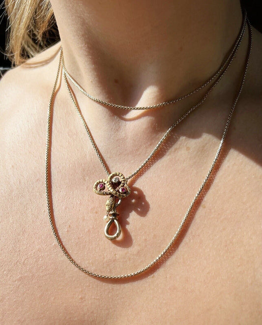 ANTIQUE • Victorian 14k Snake Slider Diamond & Ruby w/ 10k Snake Chain & Clasp