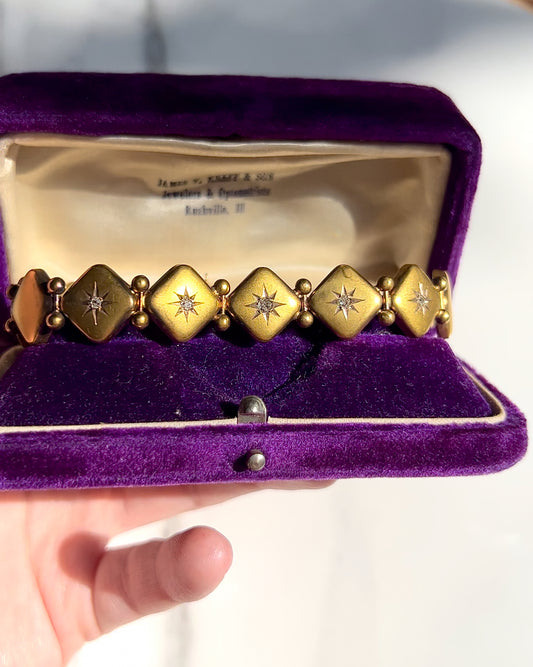 ANTIQUE • Victorian 10k Yellow Gold Square Link w/ Old Mine Cut Diamonds Bracelet (repair needed)