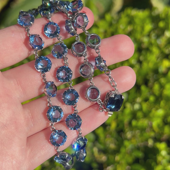 ANTIQUE • Art Deco Sterling Silver w/ Blue Sapphire Paste Rivière Necklace