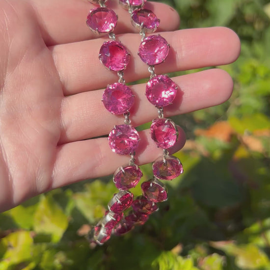 This GORGEOUS Rivière necklace is crafted from Sterling Silver and set with the most vibrant pink paste stones. I’m extremely selective about this style of necklace and will only source the highest quality pieces. There’s certain aspects I look for such as the number of prongs/claws on each setting as well as the construction of the back and connecting rings between the settings. These may seem like small things but as a bench jeweler, I understand the importance of these details that will ensure these pieces will last for generations to come.