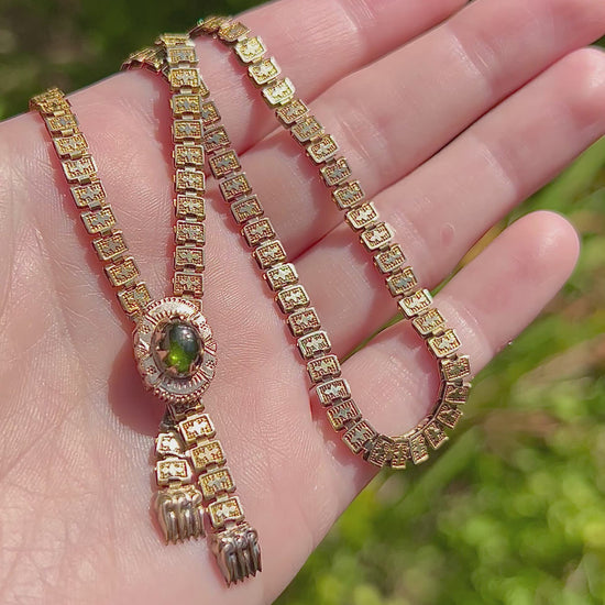 ANTIQUE • Victorian 10k Yellow Gold Book Chain Necklace w/ Tourmaline Clasp