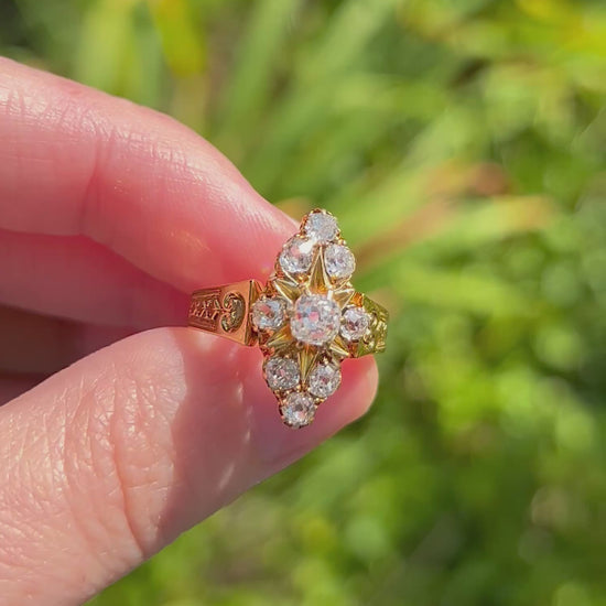 ANTIQUE • Victorian 18k Yellow Gold North Star Old Mine Cut Diamond Ring