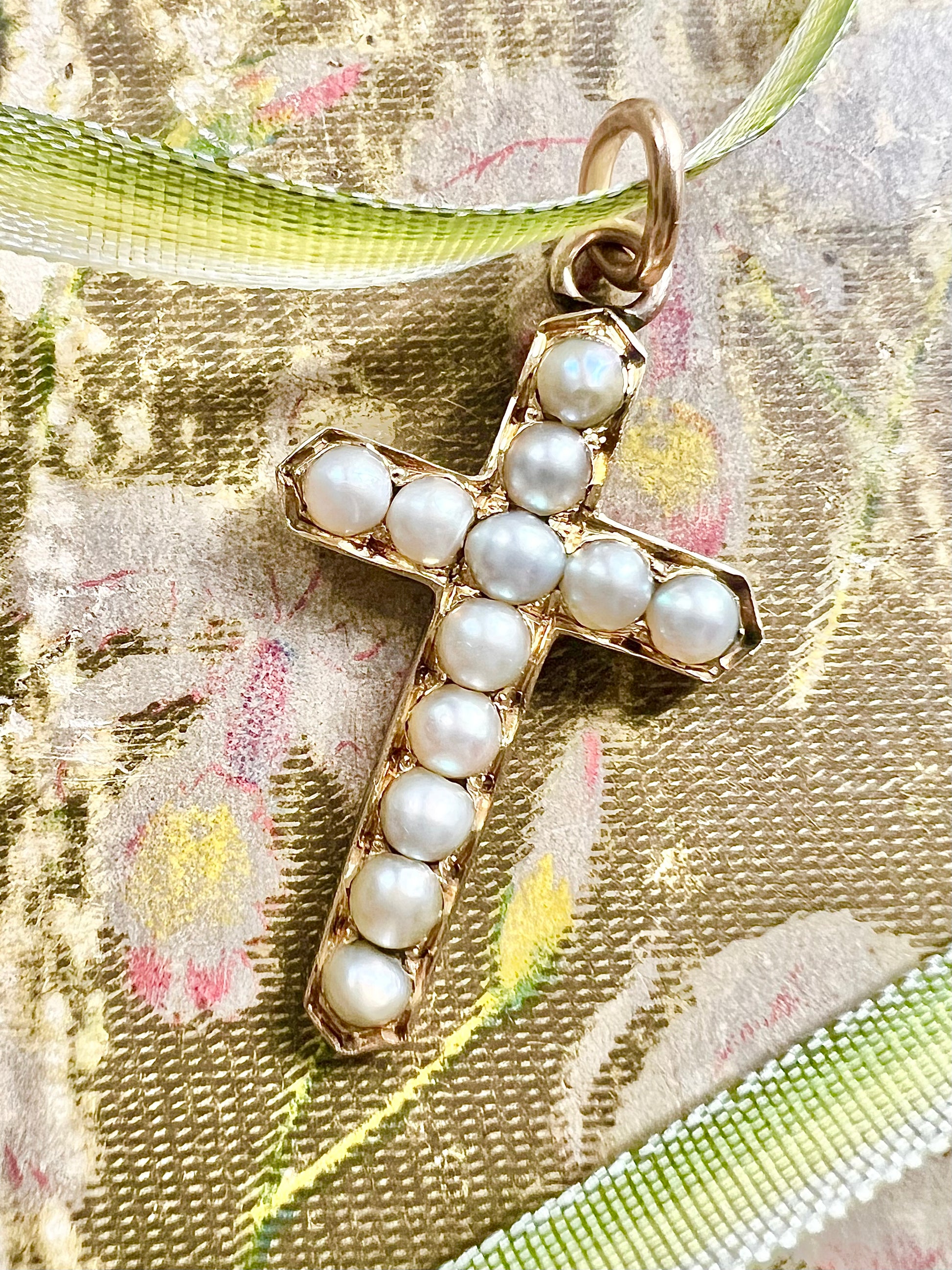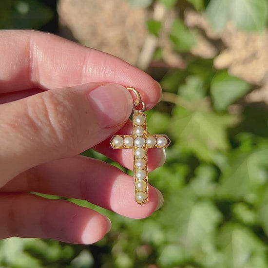 ANTIQUE • Victorian 9ct Yellow Gold w/ Saltwater Pearls Cross Pendant
