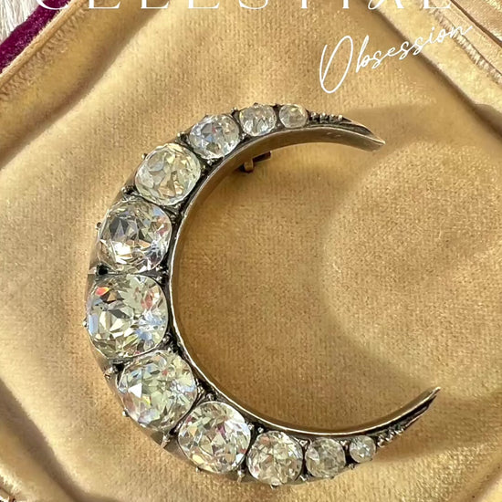 This antique Victorian Sterling Silver Crescent Brooch has some of the most gorgeous old cut foiled-back paste stones I’ve ever seen - they absolutely SING in the sunshine, shade and any other light source they meet. Not all paste is created equal and these have a high lead content to their composition giving them that beautiful rainbow refraction when the light hits them. The fabulous old mine cushion cuts are in fantastic condition with the foil completely intact, zero darkening over time and mounted in exquisitely crafted cut-down collet settings.